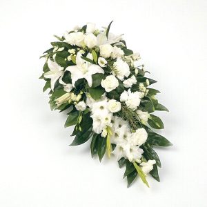 Crafted with delicate roses, lilies, gladioli, and other seasonal flowers, this single-ended spray provides a respectful and elegant tribute. Our expert florists complete the arrangement with additional foliage for a lush, full look.